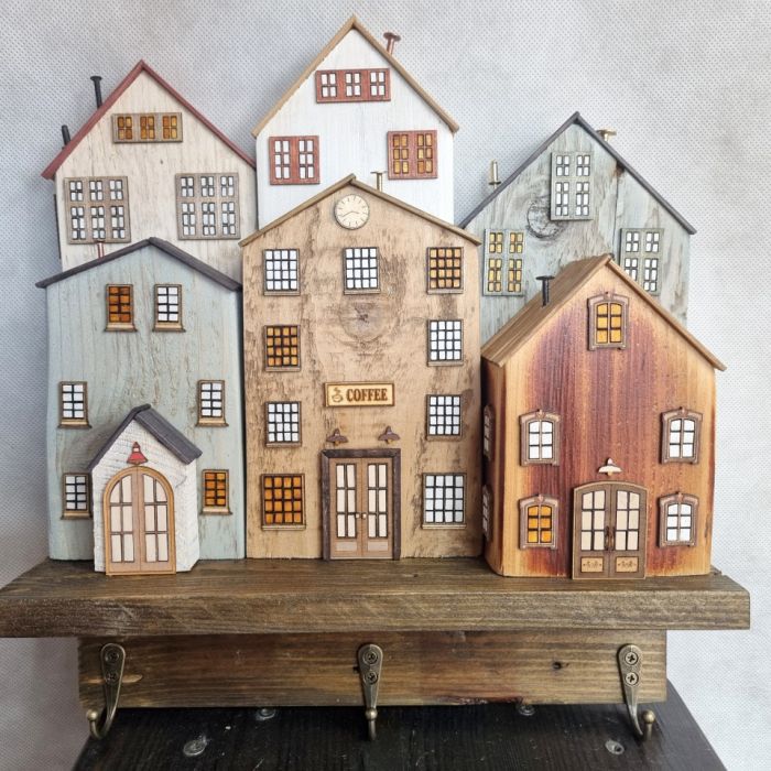 Zadaj pytanie dotyczące produktu: Wieszak - drewniane domki - na klucze i inne drobiazgi 21.
