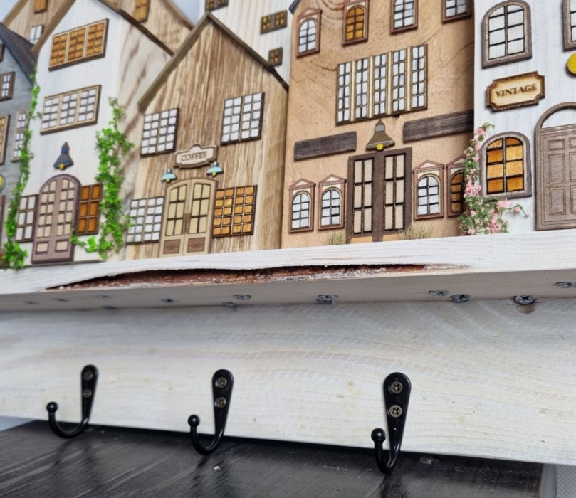 Zadaj pytanie dotyczące produktu: Wieszak - drewniane domki - na klucze i inne drobiazgi 23