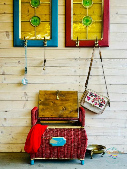 Nazwa produktu: Wiklinowe siedzisko ze schowkiem do przedpokoju, sypialni, boho, półka GRATIS