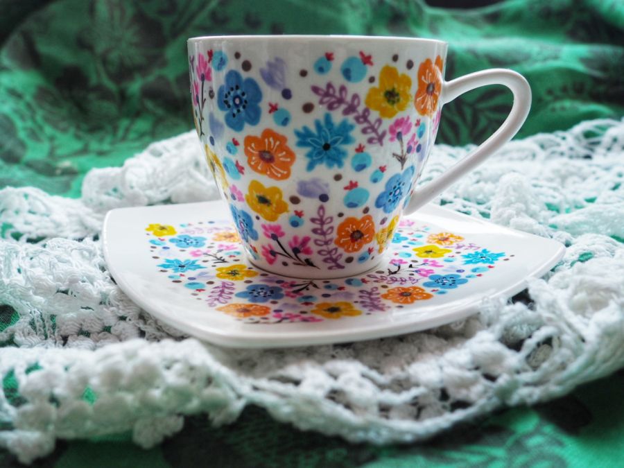 Ręcznie malowany zestaw filiżanka ze spodkiem będzie doskonałym podarunkiem dla ukochanej osoby, której obecność w swym życiu chcesz docenić upominkiem.