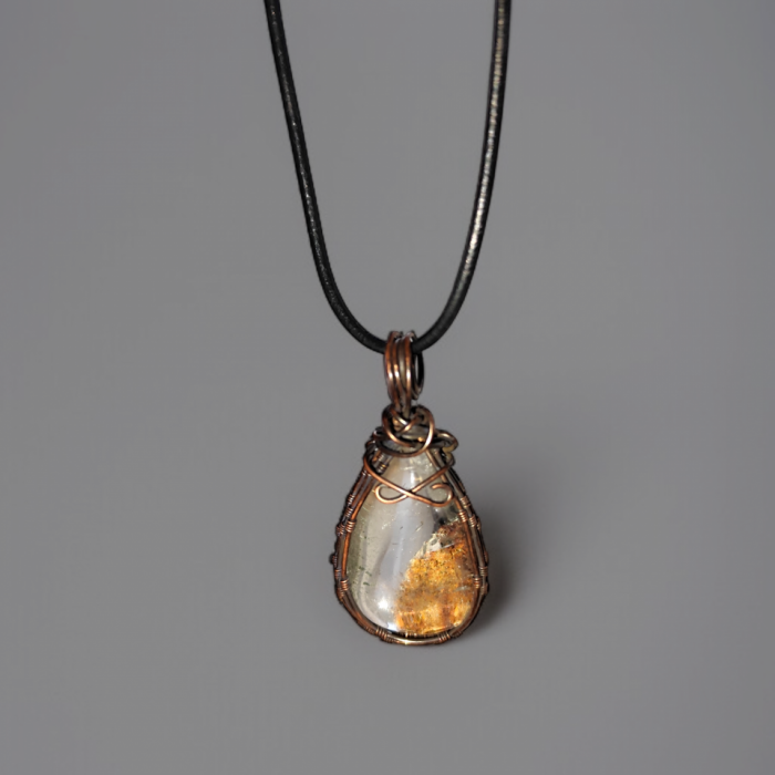 Odkryj unikalny wisiorek, który emanuje subtelną elegancją i potężną energią natury. Ten misternie wykonany ręcznie wisiorek łączy w sobie piękno fasetowanego kwarcu fantomowego z ciepłym blaskiem czystej miedzi. Każdy detal został starannie uformowany techniką wire wrapping, tworząc niepowtarzalną kompozycję, która zachwyca swoją formą i głębią.