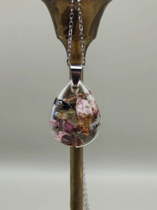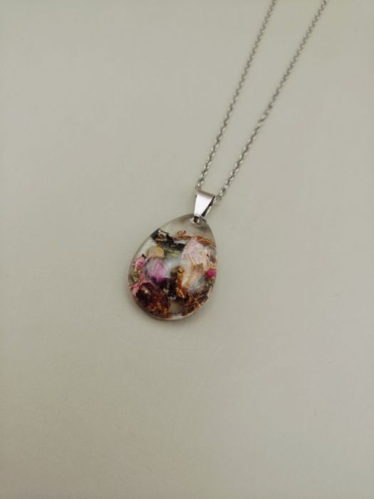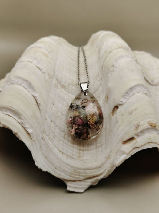 Zadaj pytanie dotyczące produktu: Wisiorek z żywicy z naturalnymi suszonymi kwiatami - Kwiatowa Kropla