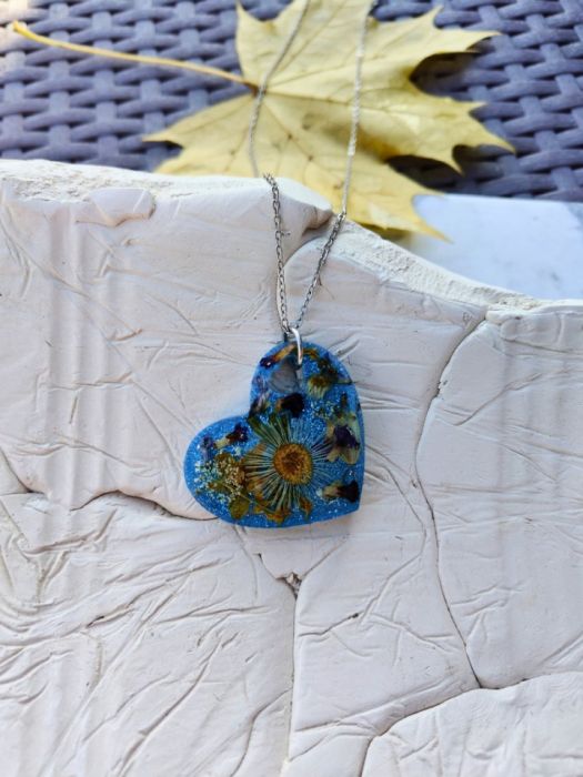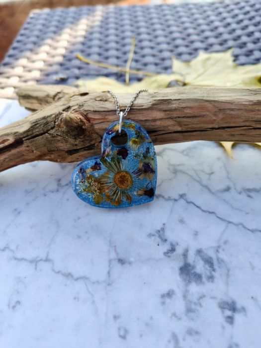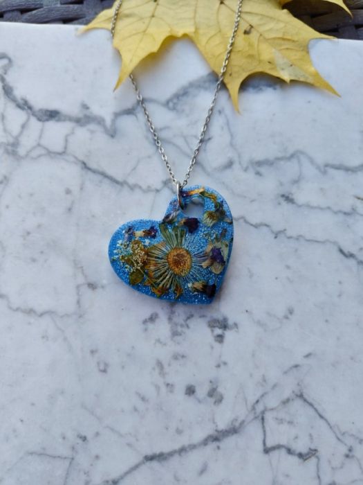 Odkryj wyjątkowy wisiorek z żywicy epoksydowej w kształcie serca, stworzony z dbałością o każdy detal. W jego wnętrzu zamknięte są prawdziwe suszone kwiaty, które nadają mu niepowtarzalny charakter i naturalny urok. Każdy egzemplarz jest unikatowy – nie znajdziesz dwóch identycznych!