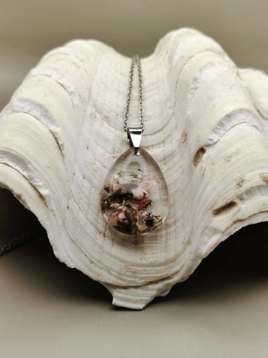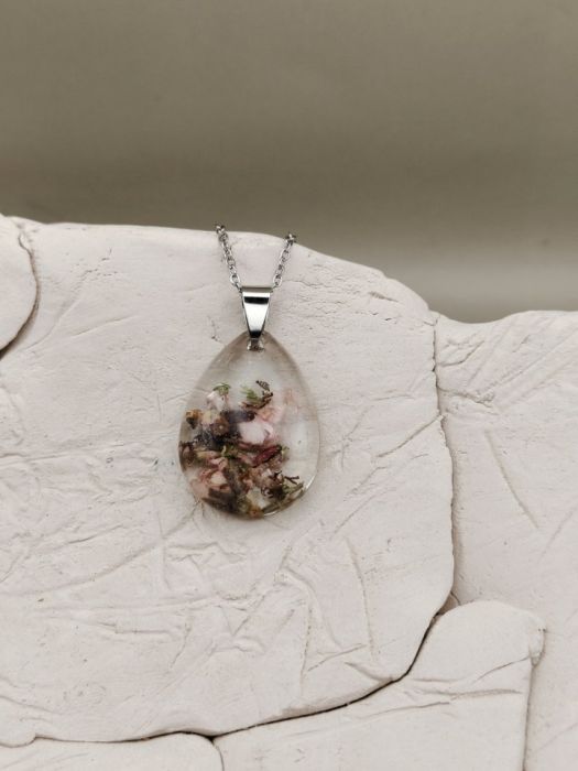 Zadaj pytanie dotyczące produktu: Wisiorek z żywicy z zatopionymi suszonymi kwiatami