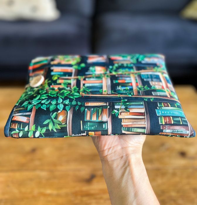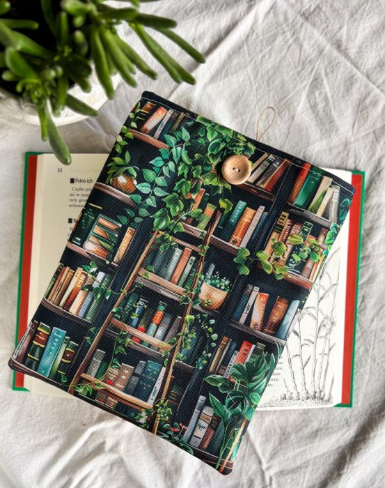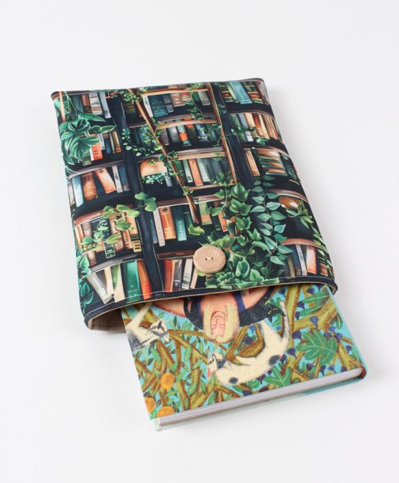 Zapinany na guzik z elastyczną gumką, świetnie trzyma zawartość w środku. Wzór z motywem książek i kwiatów zachwyci każdego miłośnika czytania i będzie też pięknym prezentem.