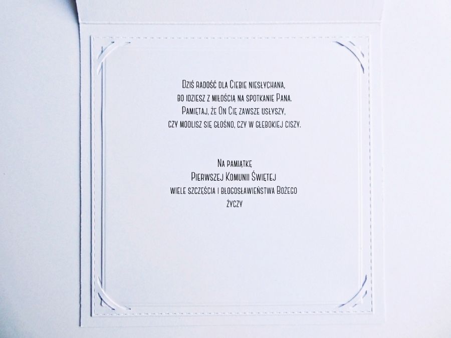 Wyjątkowa ręcznie wykonana kartka komunijna w komplecie z białą kopertą - prosta, delikatna, z duszą.