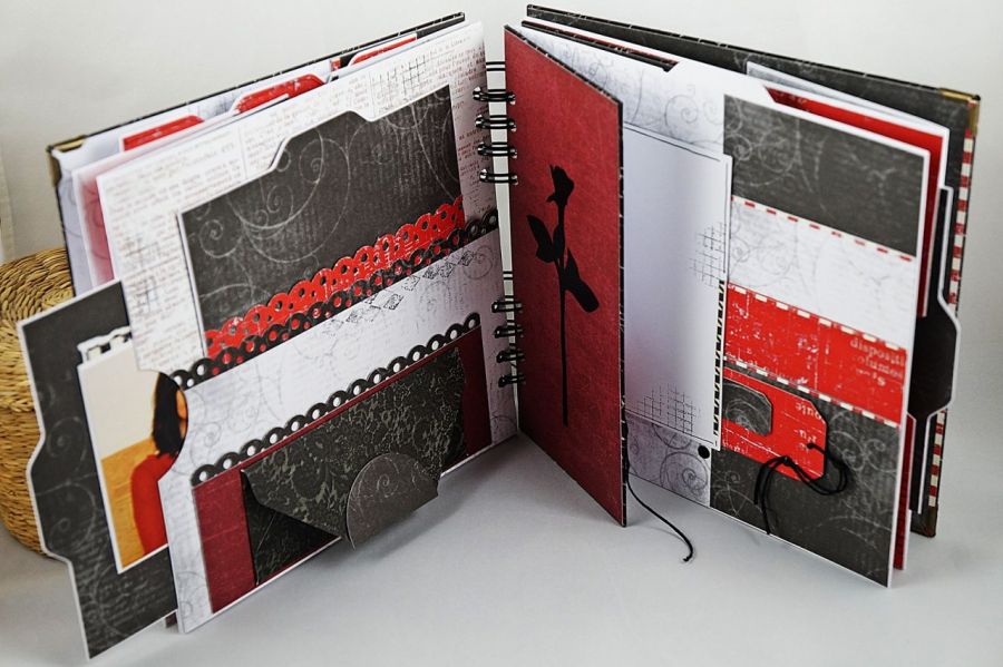 Wyjątkowy album w całości wykonany ręcznie - mnóstwo miejsc na zdjęcia, ukryte strony, schowki na dodatkowe fotki, kieszonki - może być świetnym prezentem z okazji rocznicy ślubu, urodzin, walentynek itp.
