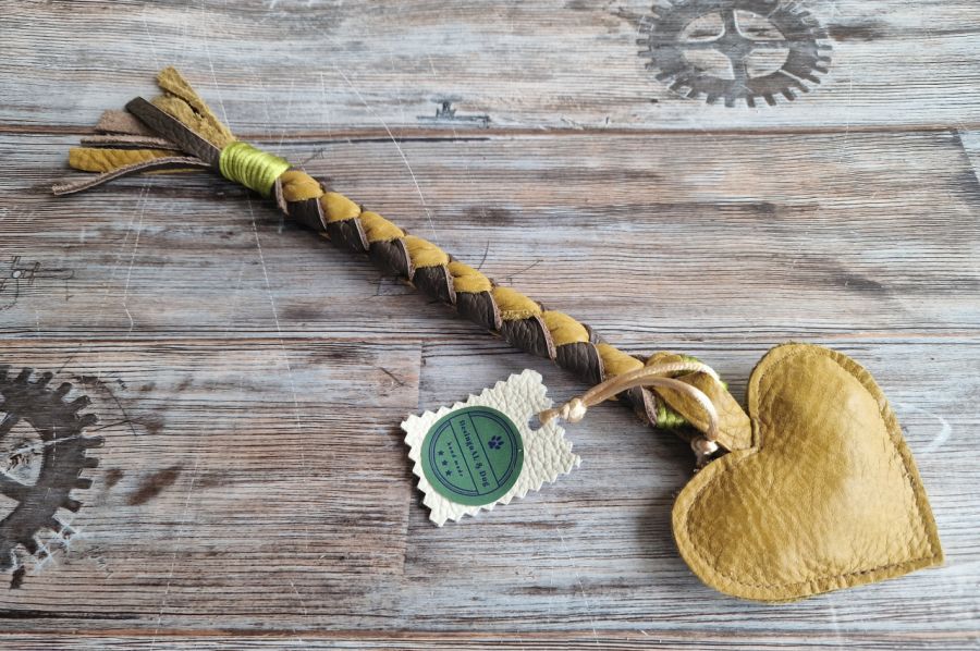Zadaj pytanie dotyczące produktu: Zabawka dla psa, musztardowe serce, Zabawka ze skóry naturalnej, szarpak, akcesoria dla psa