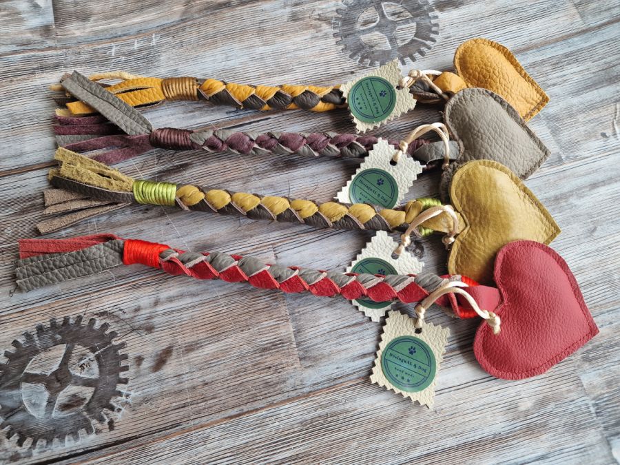 Zabawki dla psów wykonane z naturalnej skóry.