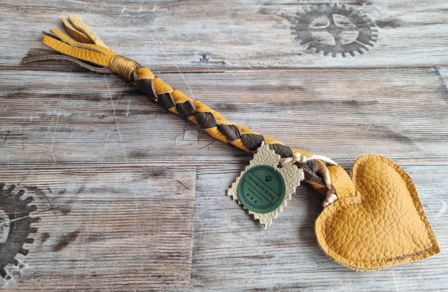 Zadaj pytanie dotyczące produktu: Zabawka dla psa, żółte serce, Zabawka ze skóry naturalnej, szarpak, akcesoria dla psa