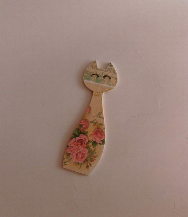 Drewniana zakładka do książki obustronnie zdobiona metodą decoupage. Zabezpieczona wieloma warstwami nietoksycznego lakieru akrylowego.