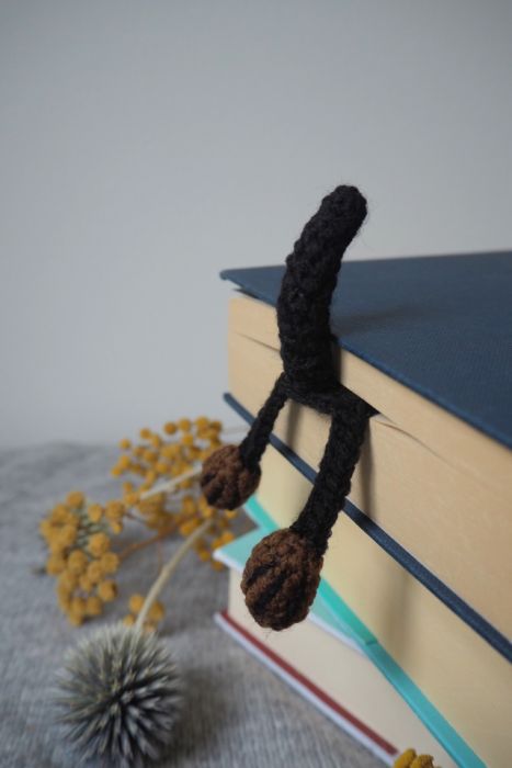 Zakładka do książki z sympatycznym pieskiem wykonana z włóczki na szydełku.