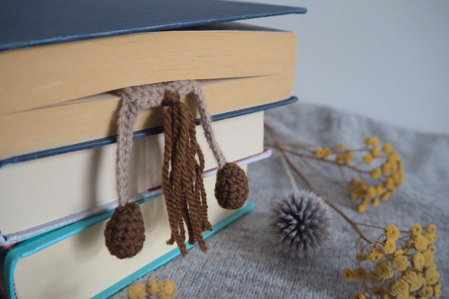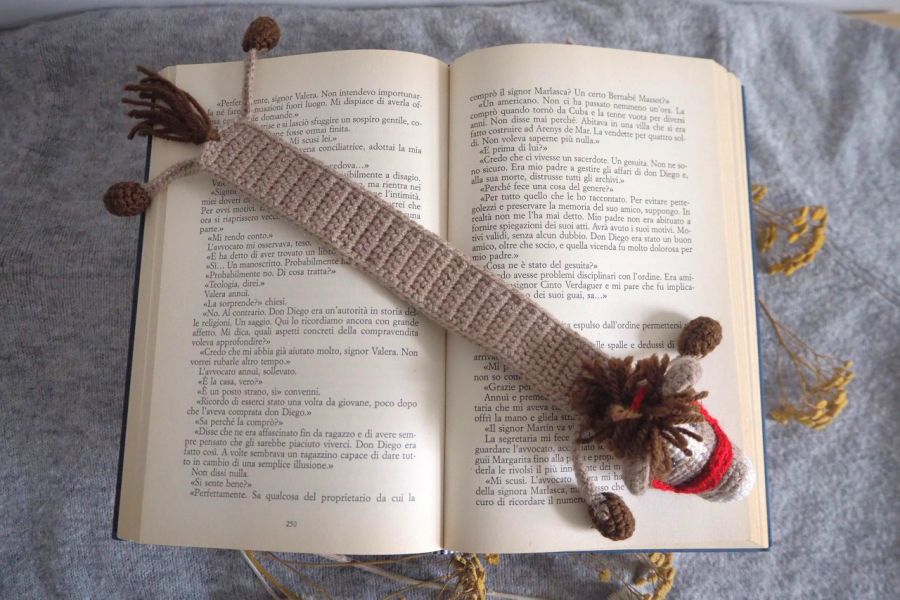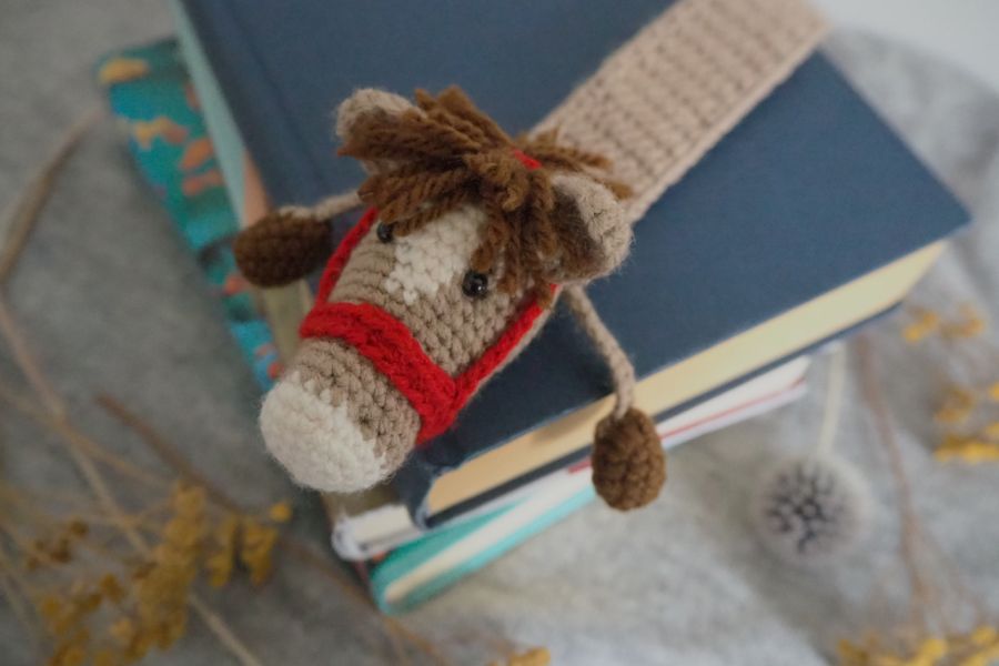 Zakładka do książki z sympatycznym konikiem wykonana z włóczki na szydełku.