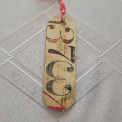 Drewniana, ZAKŁADKA do książki, dwustronnie zdobiona w technice decoupage. Wykonana z cienkiej sklejki.