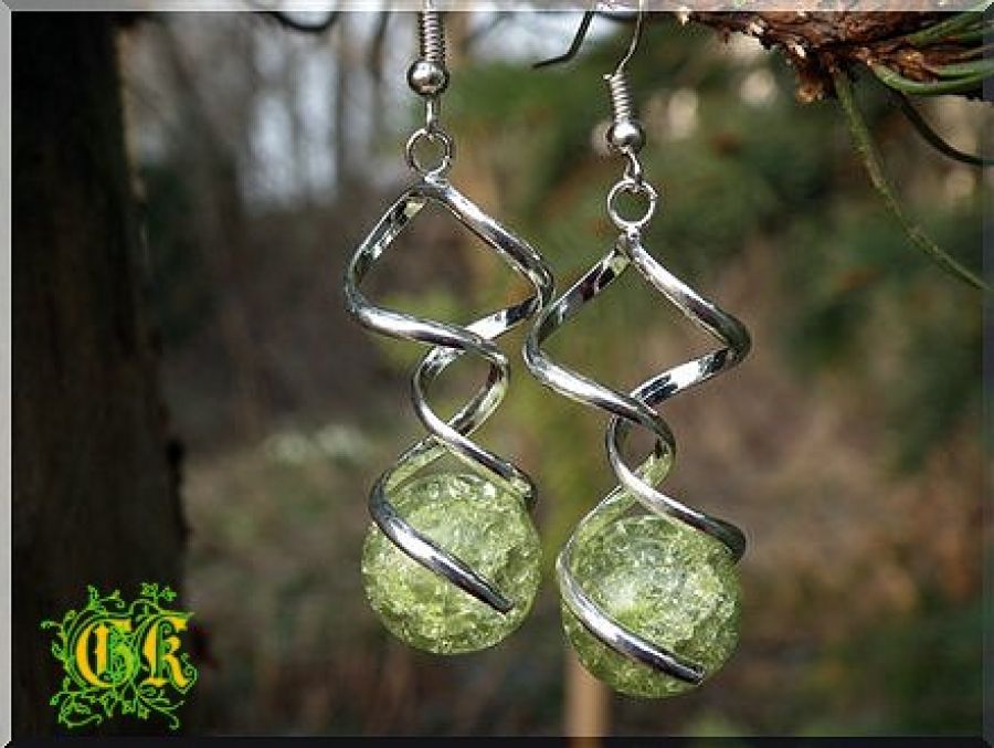 Kolczyki wykonane zostały z seledynowego kwarcu górskiego lodowego w kształcie kulek ( 14mm) .Elementy ozdobne bali.Bigle srebrne otwarte pr.925.