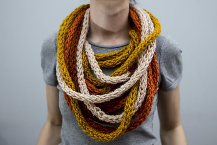 Nazwa produktu: Zamotka, włóczkowy naszyjnik, makaronowy szal