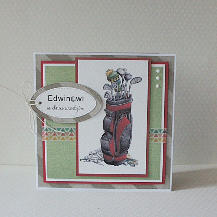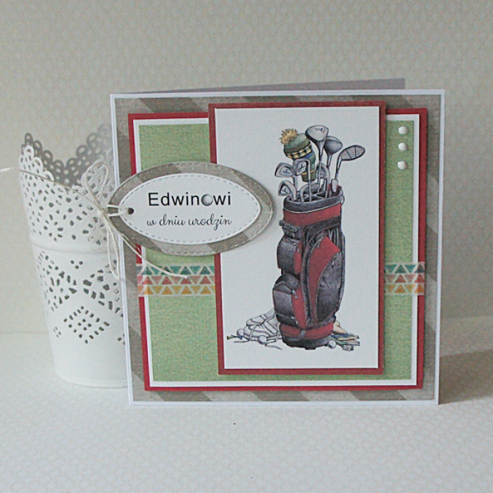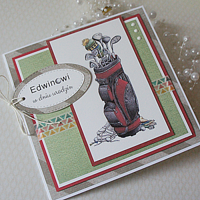 Wykonana z wykorzystaniem profesjonalnych materiałów, ozdobiona motywem torby na kije golfowe.