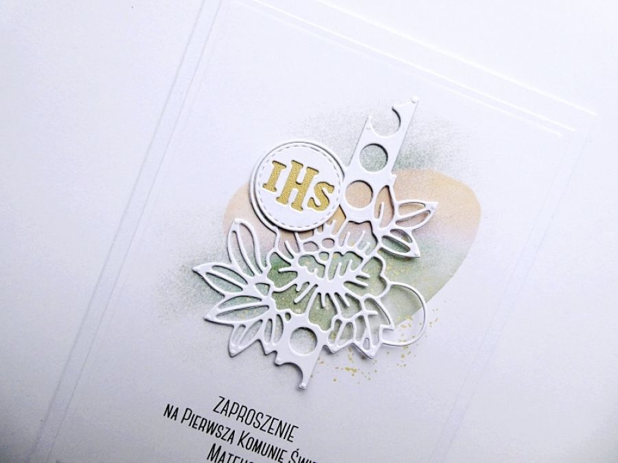Nazwa produktu: Zaproszenie komunijne kremowo-zielone Hostia