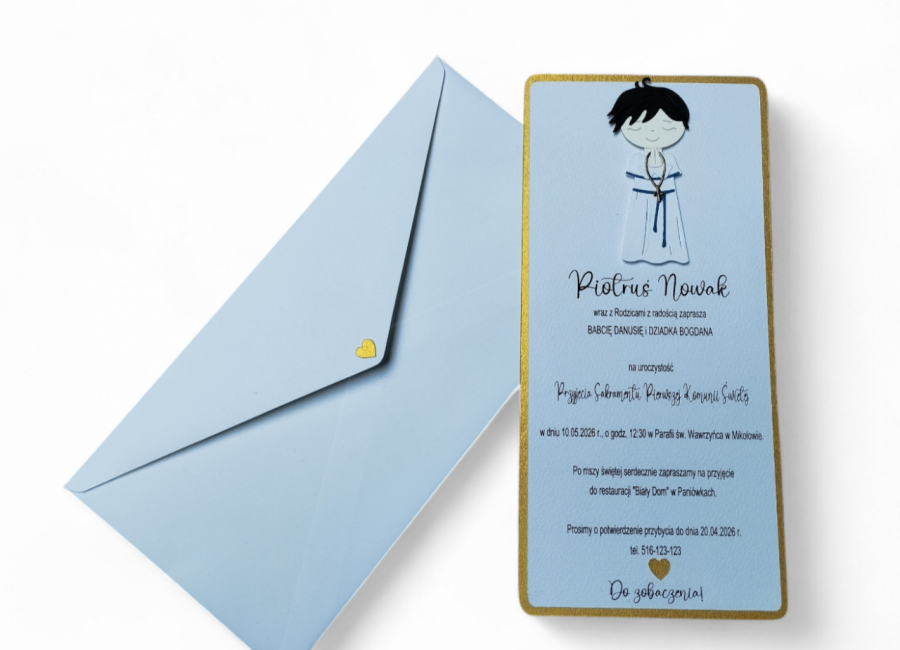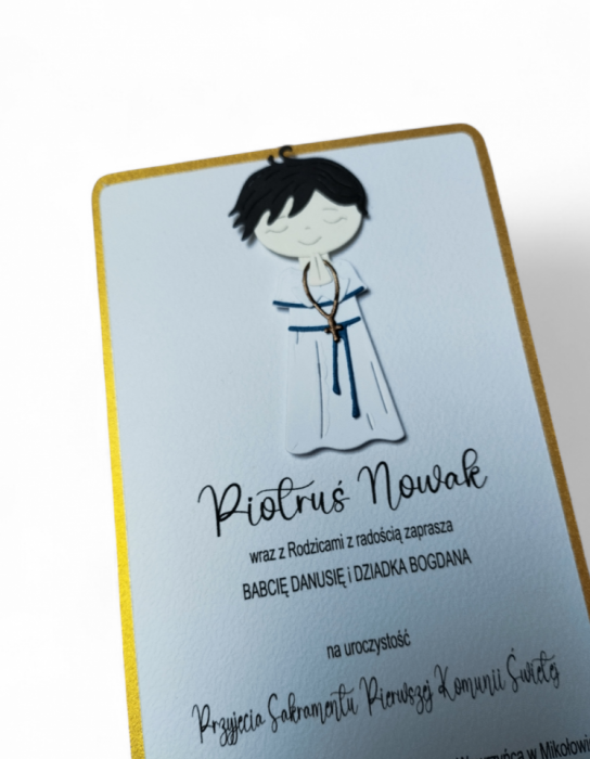 RĘCZNIE ROBIONE ZAPROSZENIE NA PIERWSZĄ KOMUNIĘ ŚWIĘTĄ - PERSONALIZOWANE