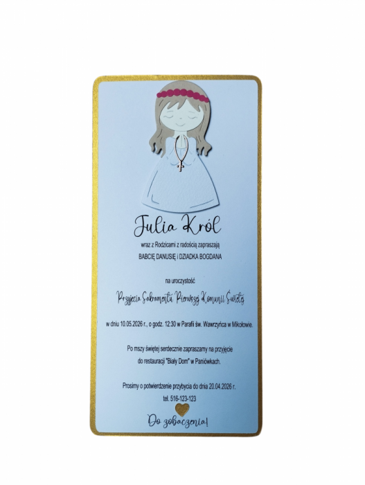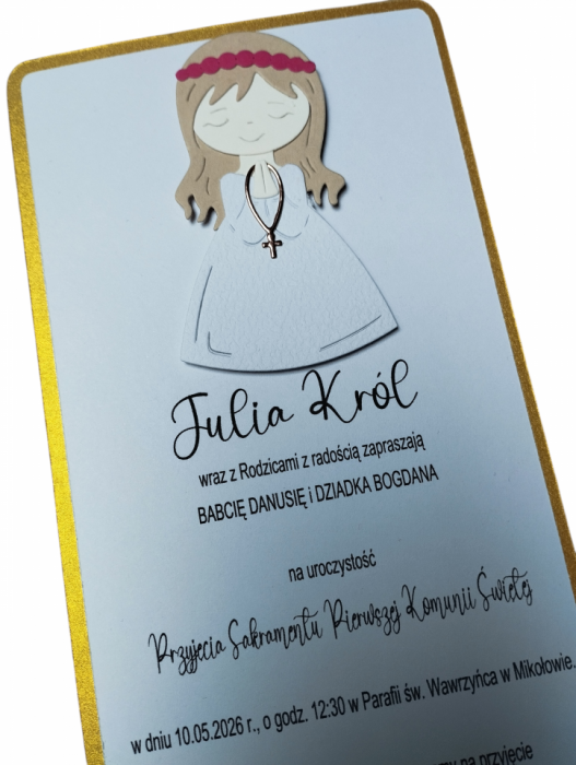 RĘCZNIE ROBIONE ZAPROSZENIE NA PIERWSZĄ KOMUNIĘ ŚWIĘTĄ - PERSONALIZOWANE