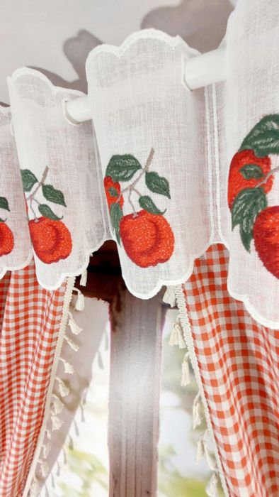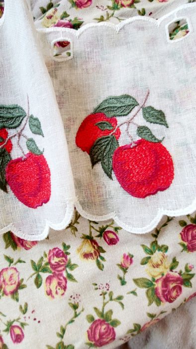 Zadaj pytanie dotyczące produktu: Zazdrostka firanka NA CENTYMETRY z haftem jabłka do kuchniI WYS 30cm