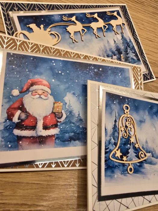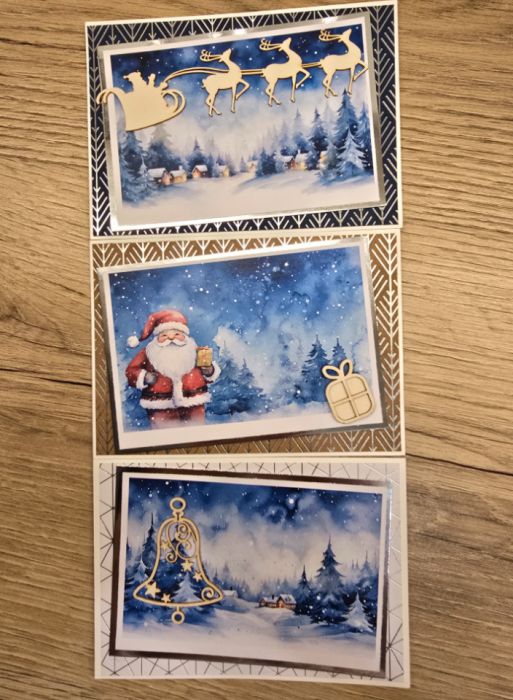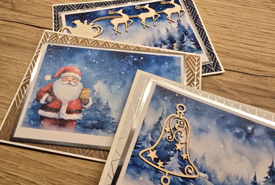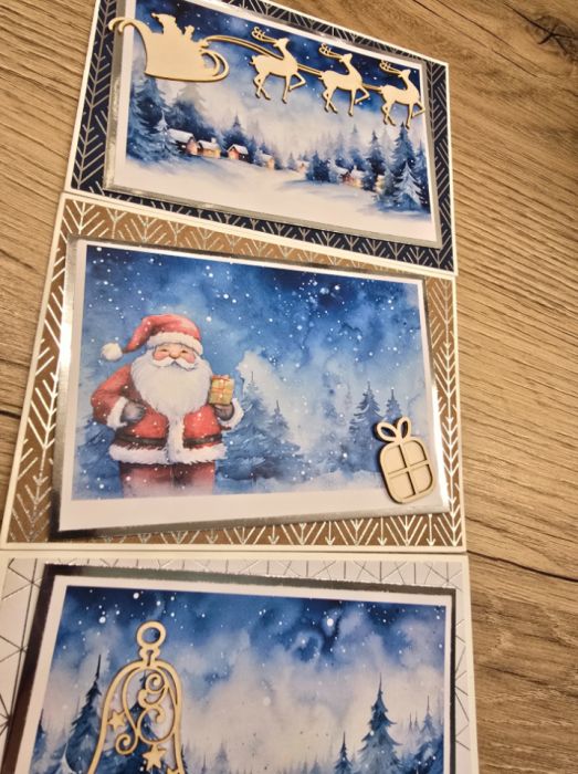 Zestaw 3 kartek wykonanych ręcznie na Boże Narodzenie z motywem świątecznym.
