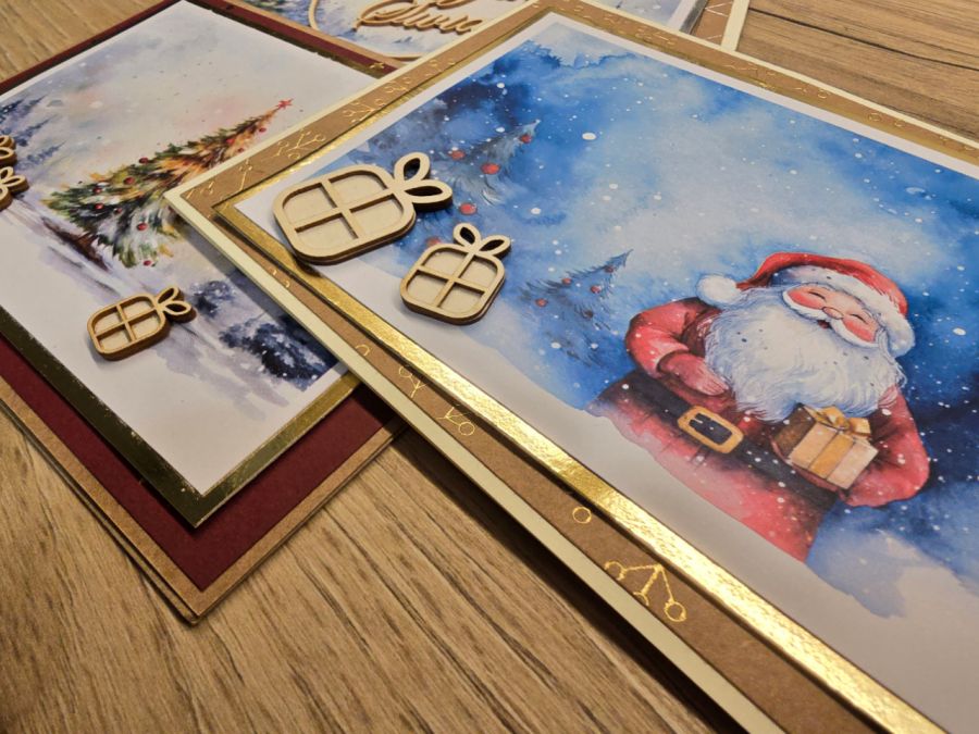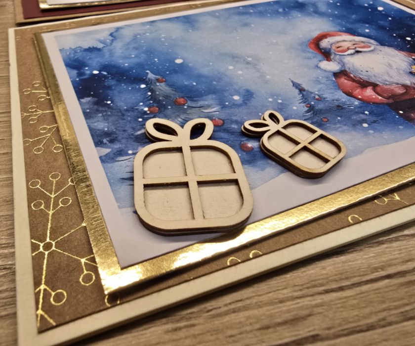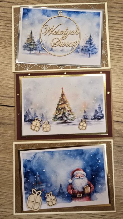 Zestaw 3 kartek wykonanych ręcznie na Boże Narodzenie z motywem świątecznym.
