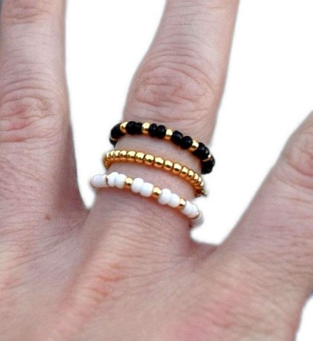 Zadaj pytanie dotyczące produktu: Zestaw 3 pierścionki elastyczne koraliki gumka czarno-biało-złote