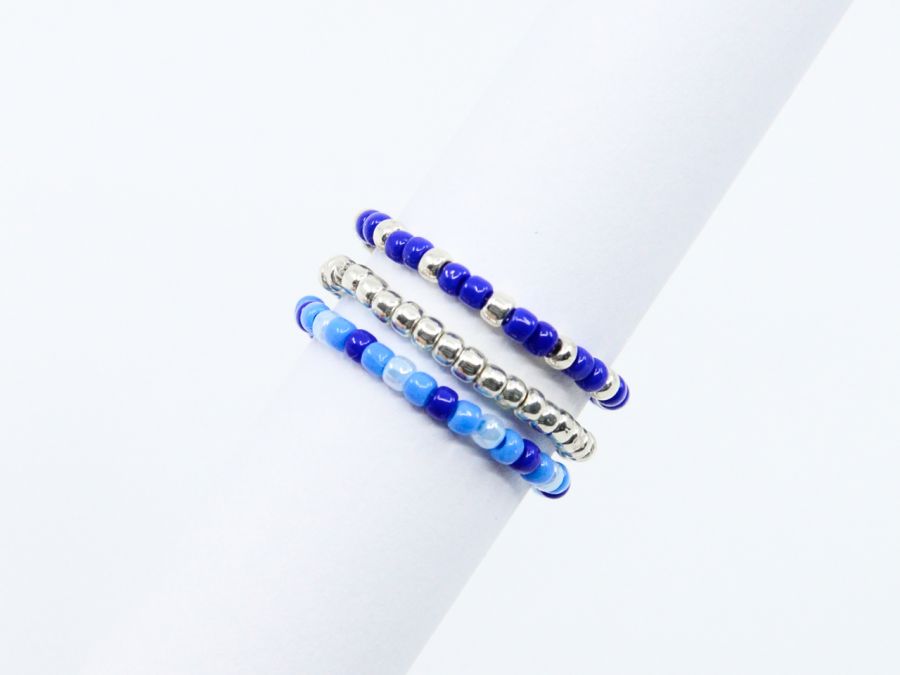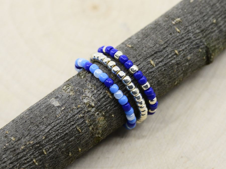 Zestaw trzech ręcznie wykonanych pierścionków elastycznych.