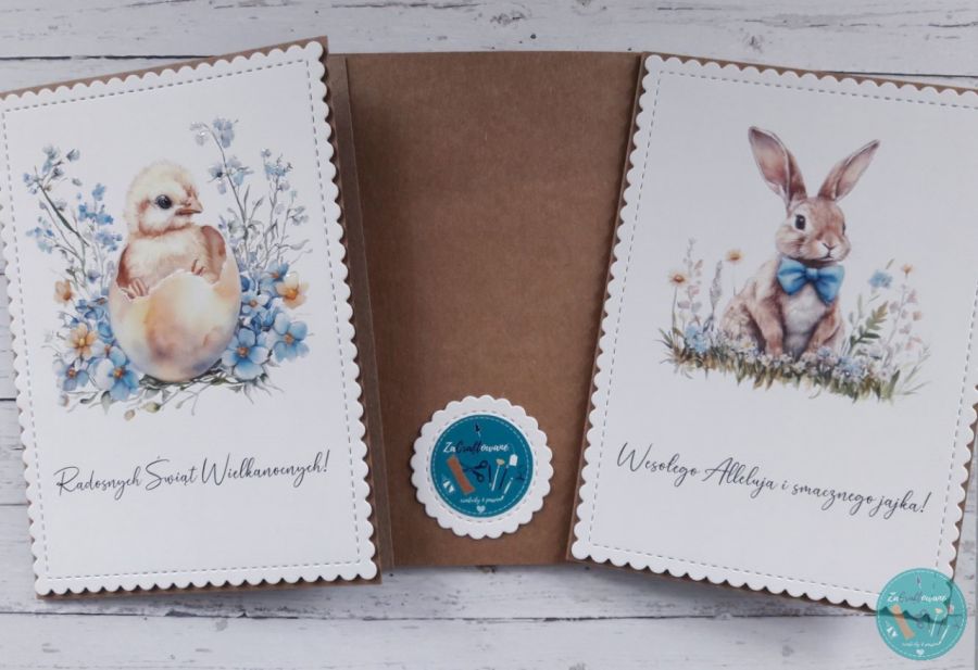 Motywem przewodnim kartek są grafiki o tematyce wielkanocno-wiosennej w postaci kurczaczków i zająców. Kartki będą idealne do złożenia życzeń wielkanocnych i umilenia okresu oczekiwania na te wyjątkowe święta.