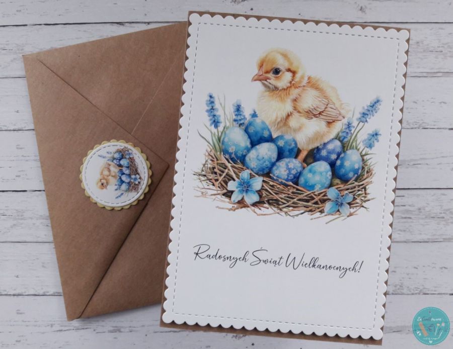 Zadaj pytanie dotyczące produktu: Zestaw 4 kartek wielkanocnych z życzeniami „Niebiesko-żółty”