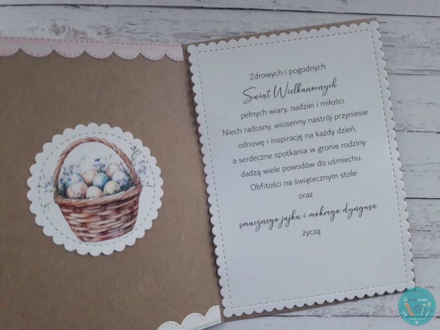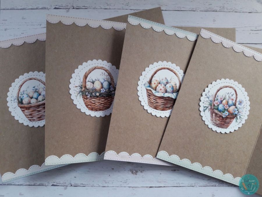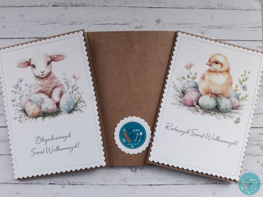 Zestaw 4 kartek wielkanocnych wykonanych metodą scrapbbokingu z wykorzystaniem profesjonalnych materiałów i z dbałością o każdy szczegół.