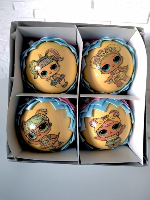 Zestaw 4 bombek styropianowych o średnicy 10cm z motywem LOL w ozdobnym opakowaniu.