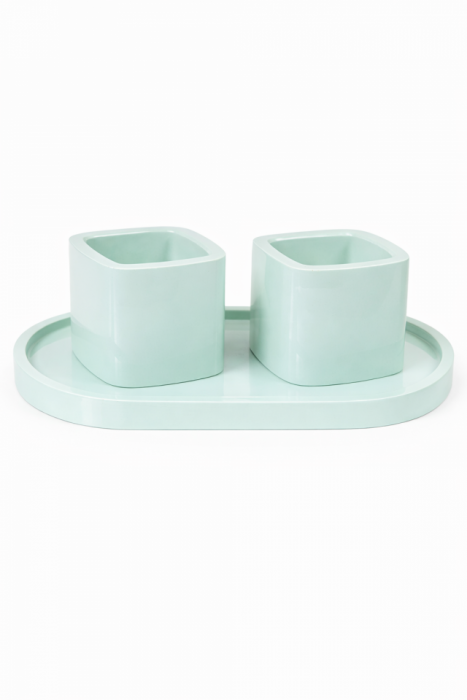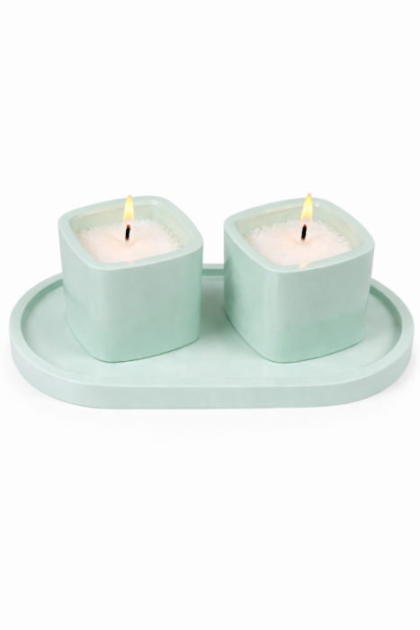 Zestaw gipsowych świeczników na świece DIY – 2 szt. + taca