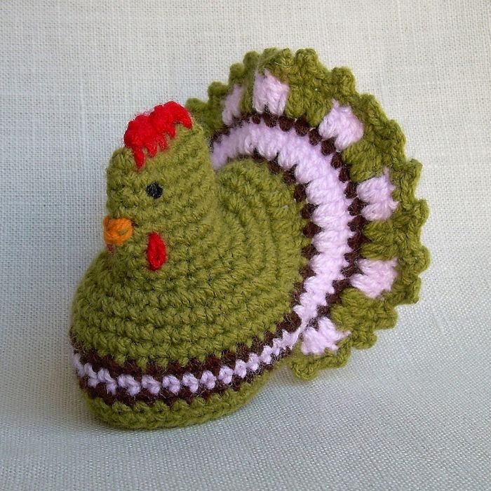 Kurka wykonana szydełkiem z włóczki akrylowej w kolorach zieleni, brązu, jasnego fioletu. Z pewnością będzie miłym akcentem wielkanocnego stroika, stołu jak również ocieplaczem kurzego jajka. Mogę wykonać w innych kolorach.