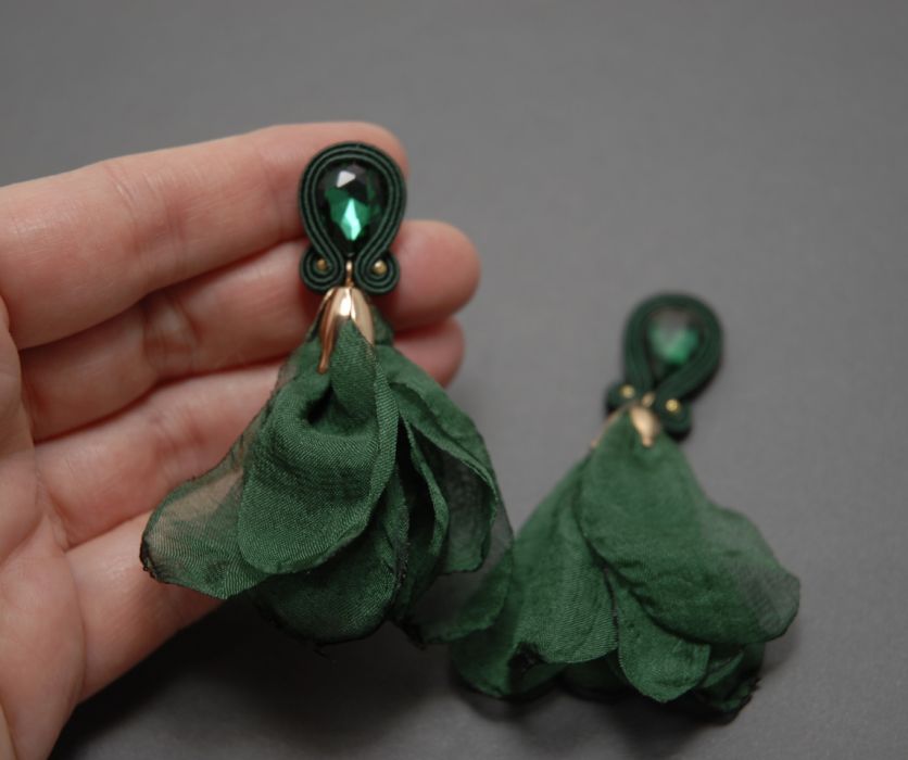 Nazwa produktu: zielone kolczyki lub klipsy sutasz z kwiatkiem