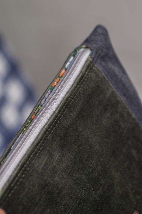 Zadaj pytanie dotyczące produktu: Zielono-szara kosmetyczka MAXI z weluru