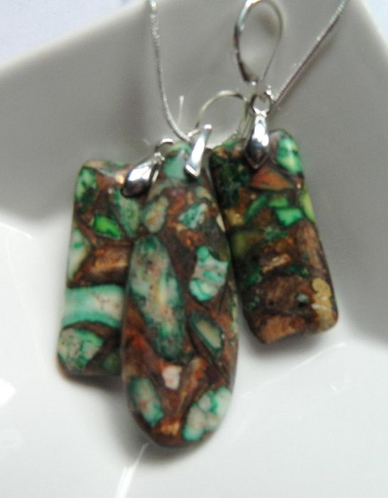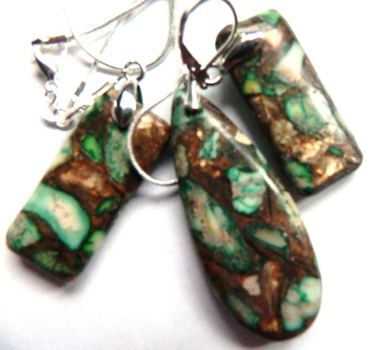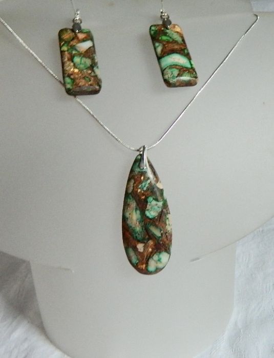 Wyjątkowo efektowny zestaw biżuterii, z całą pewnością unikatowy, "ubarwienia" naturalnych kamieni są niepowtarzalne.