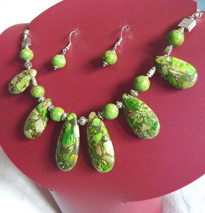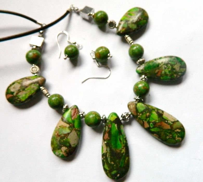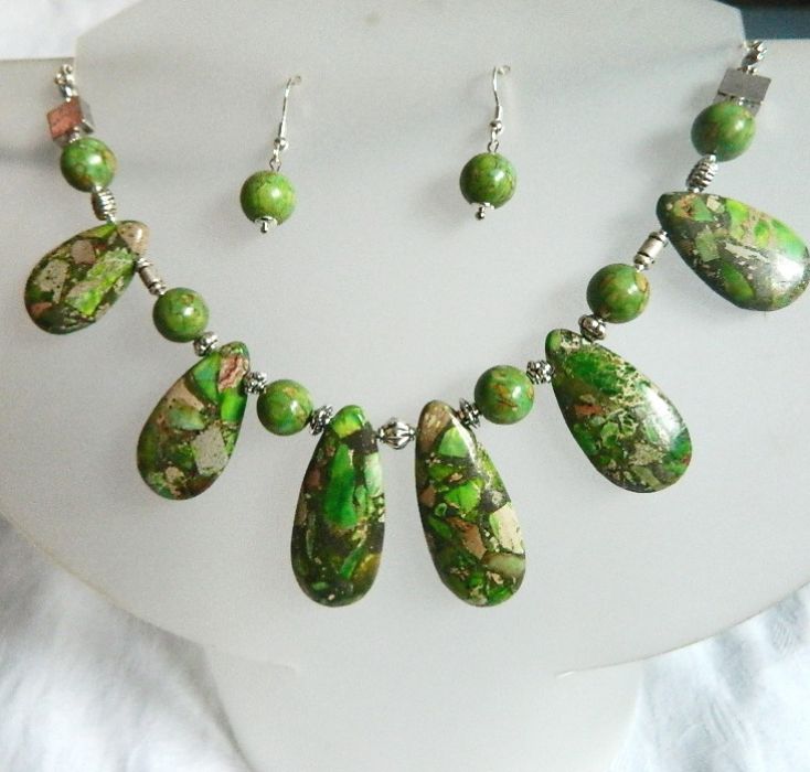 Zadaj pytanie dotyczące produktu: Zielony jaspis cesarski, okazały naszyjnik, kolia i kolczyki, komplet