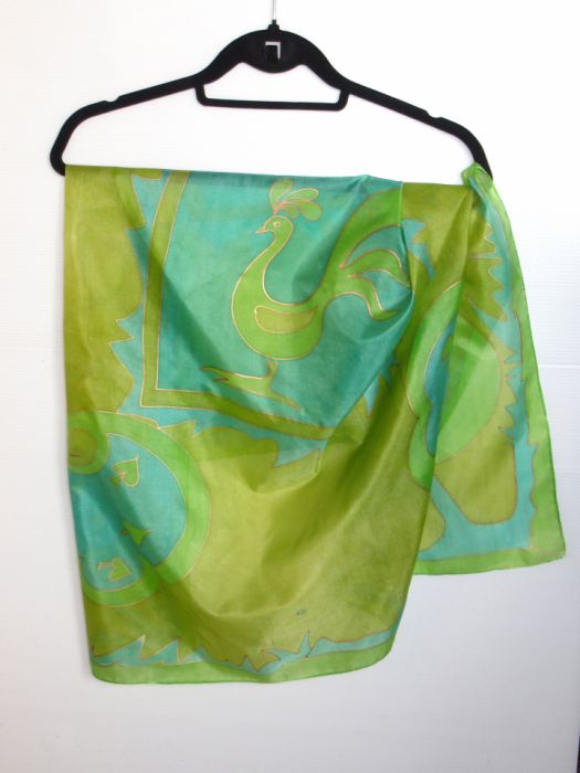 Zadaj pytanie dotyczące produktu: Zielony Ptak, duża jedwabna malowana chusta