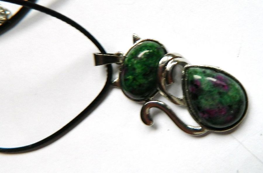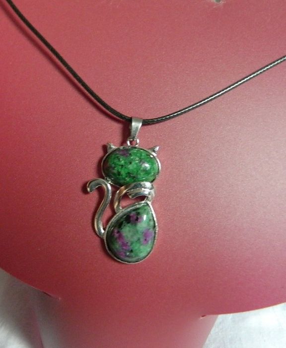Zadaj pytanie dotyczące produktu: Zielony zoizyt z rubinem, wisiorek z kotkiem, kot