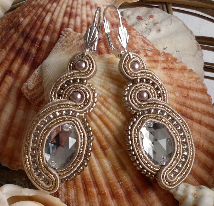 Piękne, lśniące i niezwykłe kolczyki zostały wykonane ręcznie techniką haftu sutasz. Zawieszone na biglach angelskich muszelkach.