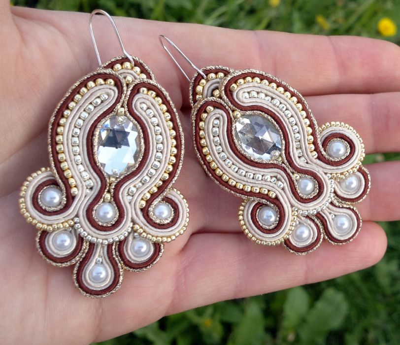 Wyjątkowe i niepowtarzalne kolczyki zostały wykonane ręcznie techniką haftu sutasz. Robią wielkie wrażenie!