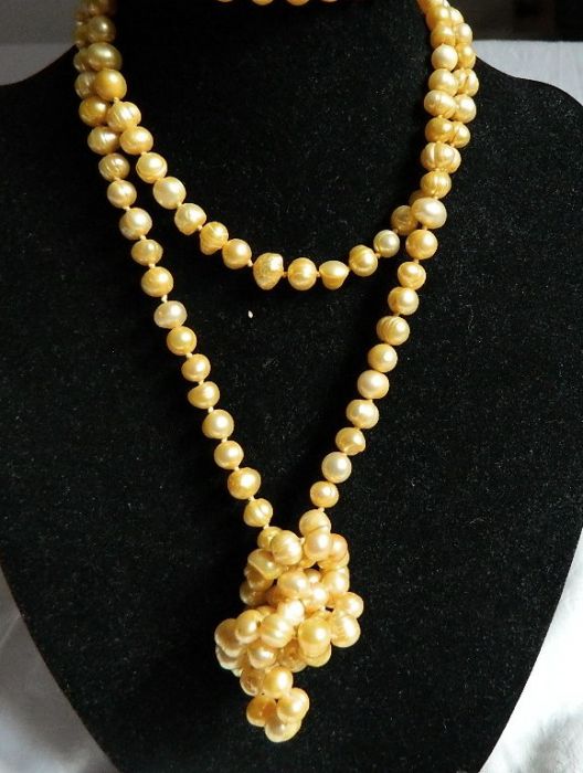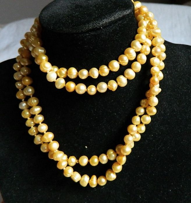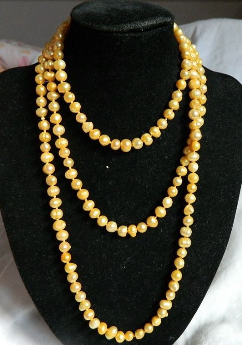 Zadaj pytanie dotyczące produktu: Żółte, naturalne perły słodkowodne, długi sznur pereł, naszyjnik